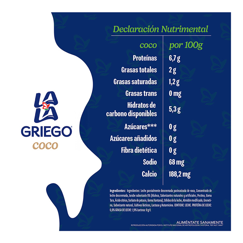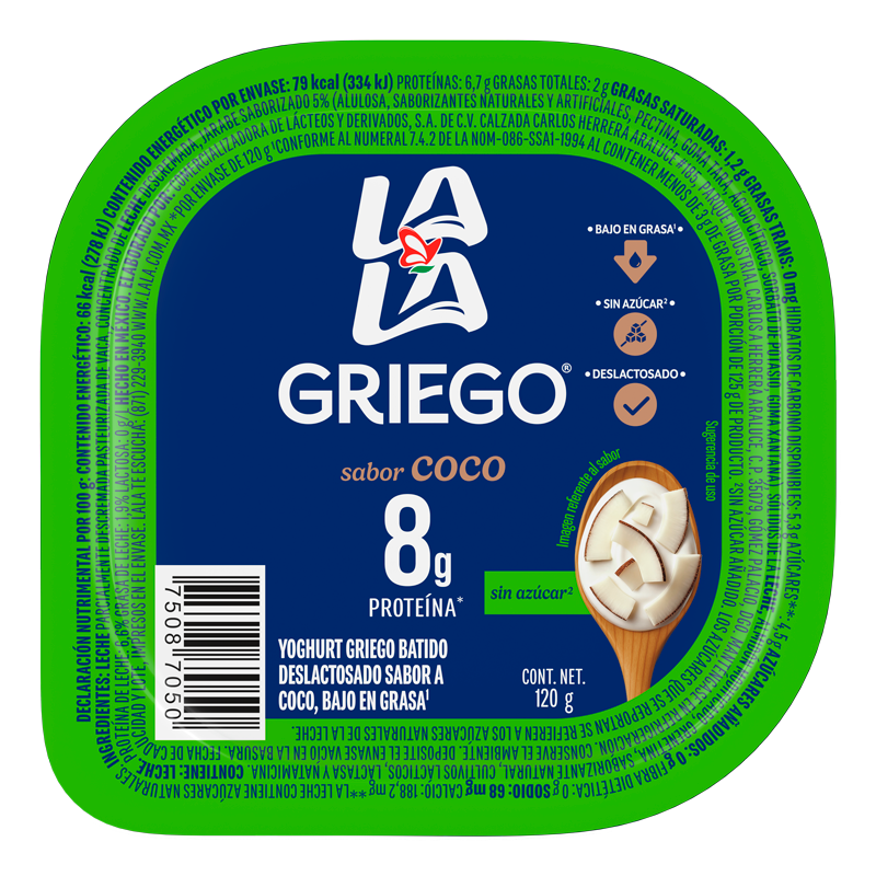 Disfruta de la irresistible cremosidad y sabor del nuevo Lala Griego® con deliciosos trozos de Coco Rallado.